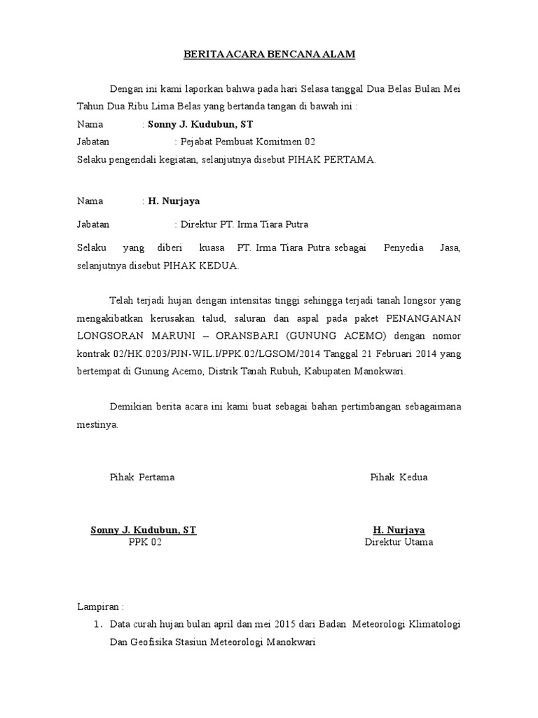 Berita Acara Kronologis Kecelakaan Kerja from imgv2-2-f.scribdassets.com 3 contoh berita bahasa inggris tentang pendidikan 5 contoh berita singkat dalam bahasa inggris terbaru 3 contoh dialog bahasa inggris 2 orang tentang pekerjaan & artinya. Menurut pasal 1868 jo pasal 37 38 dan 39 vendu reglement risalah lelang termasuk akta otentik. 7 contoh surat pernyataan dalam berbagai kasus gratis doc file. Berita acara kejadian adalah teks yang menggambarkan kronologi peristiwa tertentu. Hal ini mungkin saja jika pimpinan sedang tidak masuk kerja atau memiliki kesibukan lain yang lebih penting daripada. 11 contoh berita acara rapat serah terima kejadian. Berikut ini adalah beberapa contoh surat berita acara yang bisa anda pergunakan sebagai bahan referensi dalam menulis beragam jenis surat berita acara. Cara membuat berita acara kejadian kecelakaan kerja.